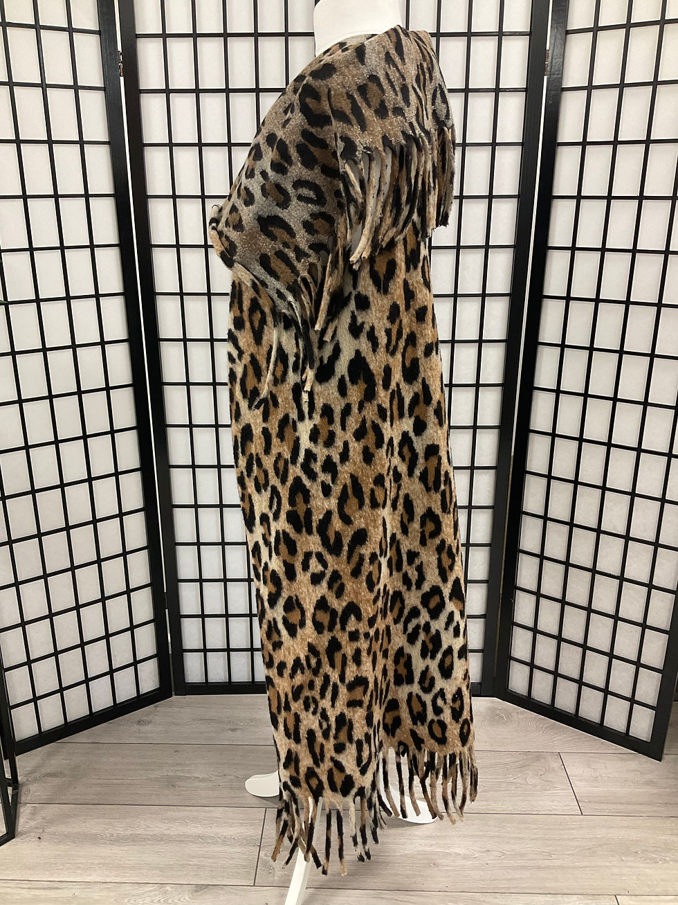 Leopard Print Woollen Open Front Long Cardigan